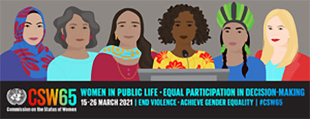 The 65th session of the United Nations Commission on the Status of Women (CSW65) took place from 15 to 26 March 2021. In response to the COVID-19 pandemic, CSW65 was held in a hybrid format with mostly virtual meetings.